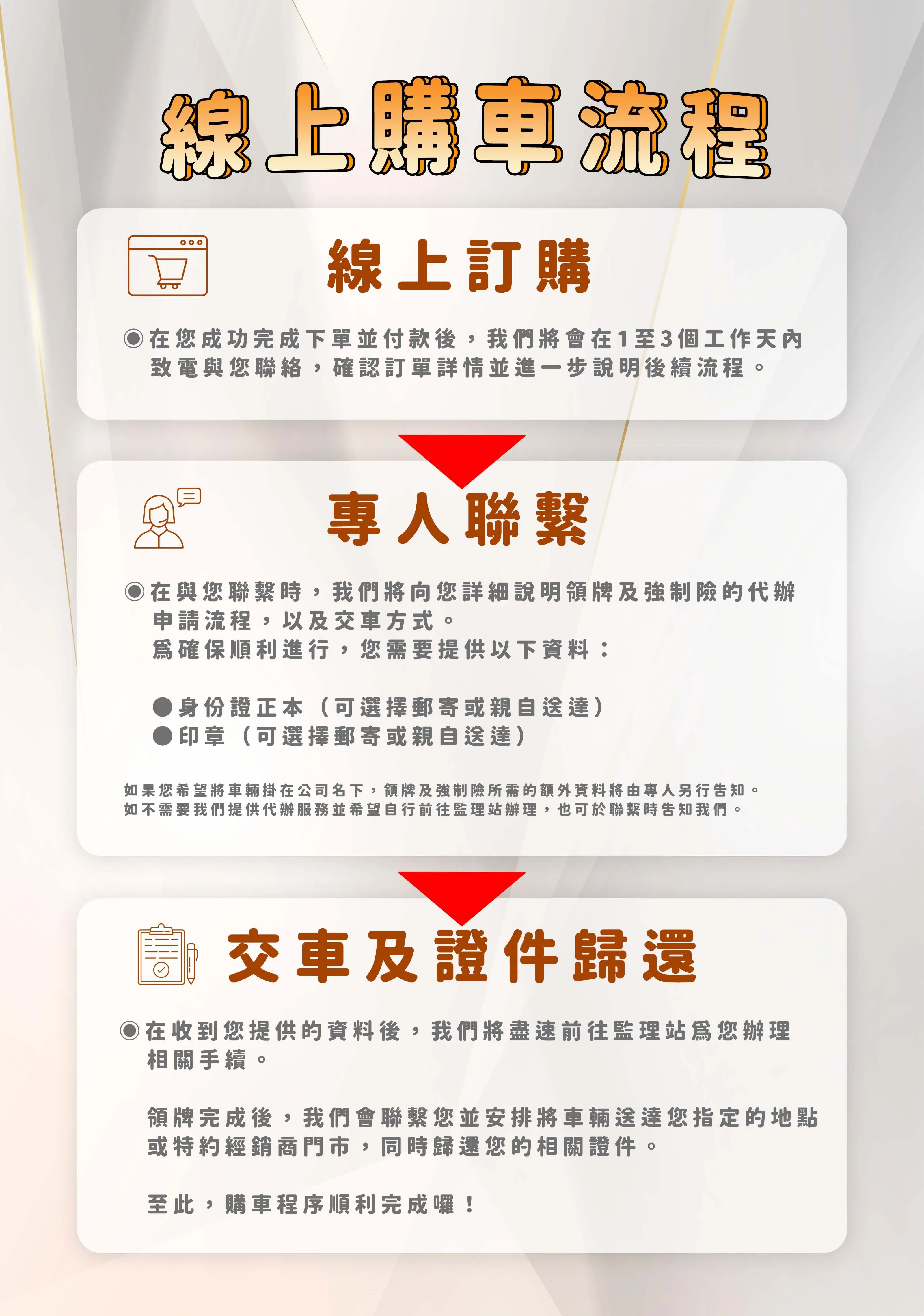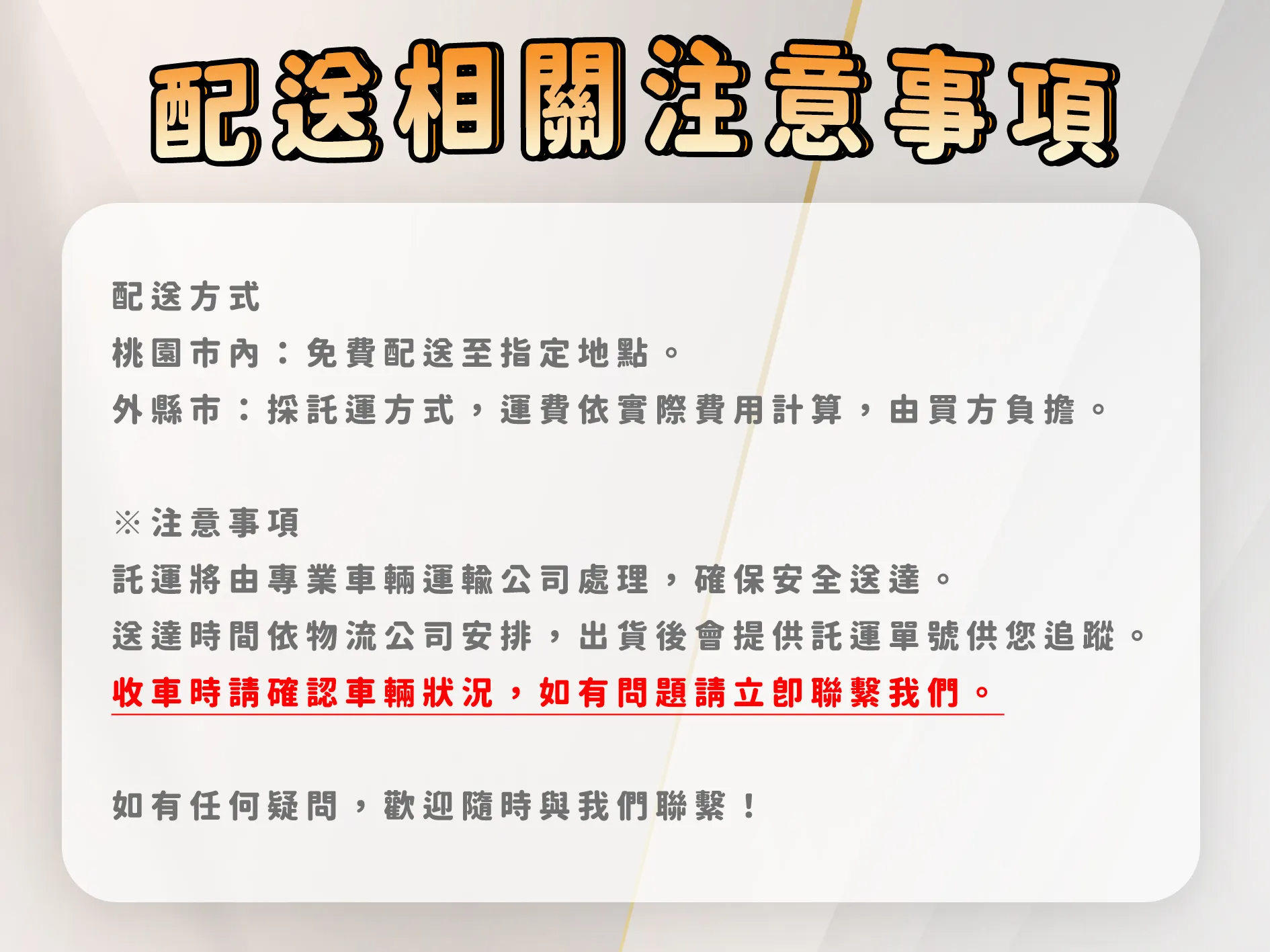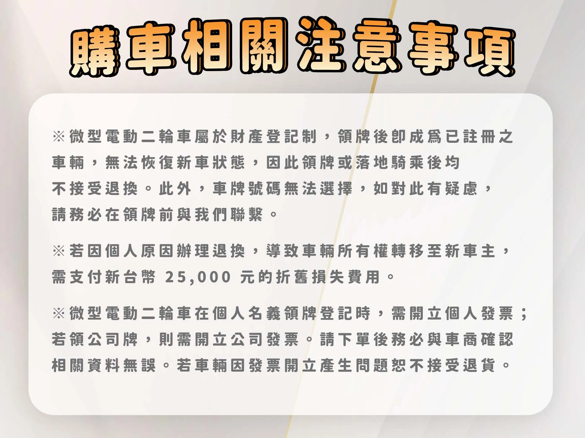 2.本車款按規定需掛牌,掛牌後不可退換貨。
